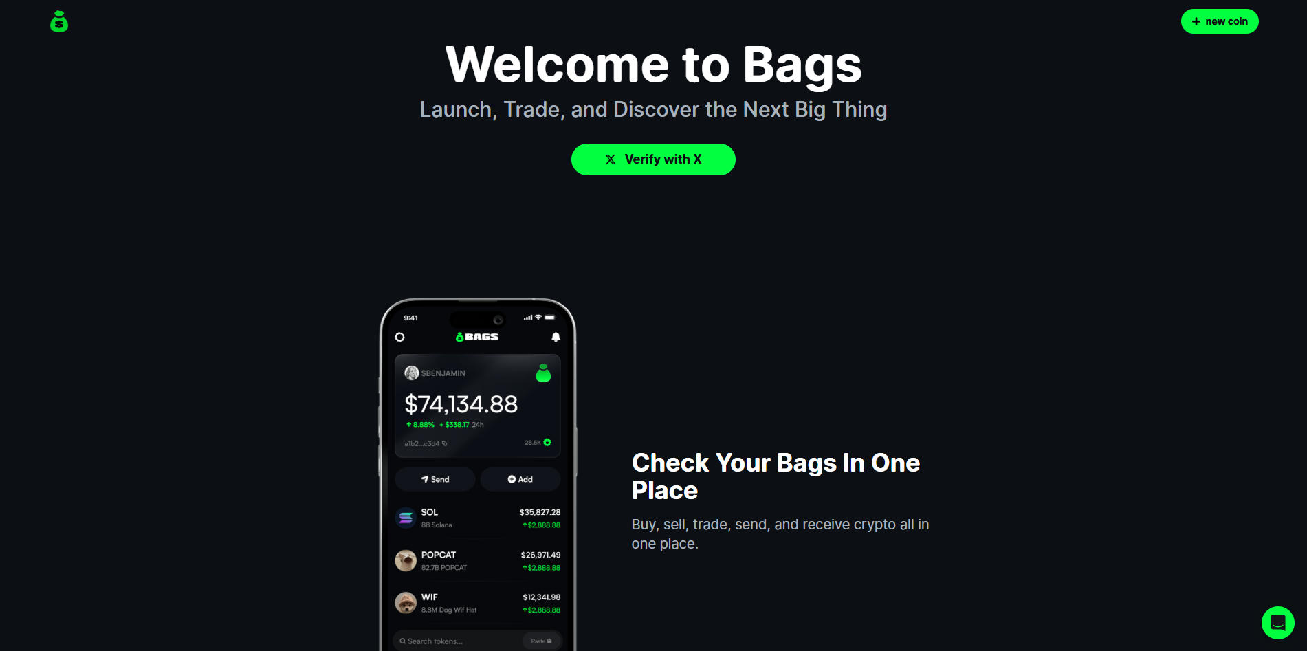 Bags est une application mobile pour trader des tokens Solana—en particulier des memecoins—dans une interface simple et sociale. Elle s’adresse aux débutants comme aux utilisateurs actifs de Solana qui veulent des swaps rapides, des alertes de prix et de la découverte sociale sur iOS et Android. Entièrement native Solana, Bags inclut aussi un launchpad intégré pour les créateurs qui souhaitent lancer des tokens et développer des communautés dès le premier jour.