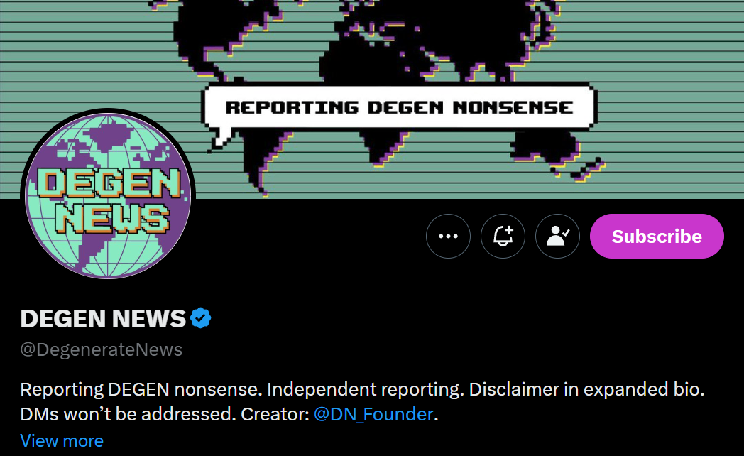 L’accès au contenu de DEGEN NEWS est gratuit. Les utilisateurs peuvent suivre ses mises à jour sur les plateformes sociales sans frais associés.