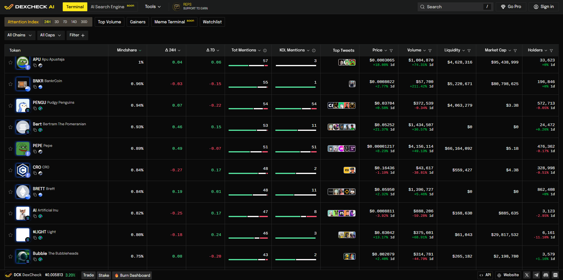 DexCheck offre un éventail de fonctionnalités, notamment :