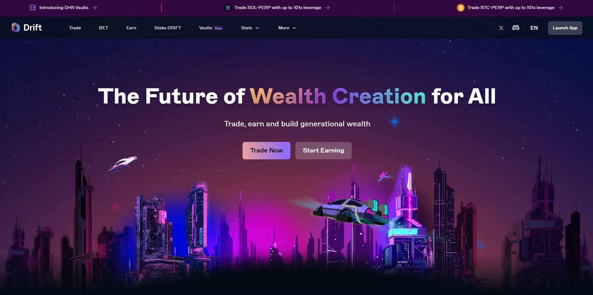 Drift Protocol est un exchange décentralisé (DEX) construit sur la blockchain Solana, offrant du trading de perpétuels et de spot on-chain. Il permet aux utilisateurs de trader divers actifs directement depuis leurs wallets, sans intermédiaires centralisés.