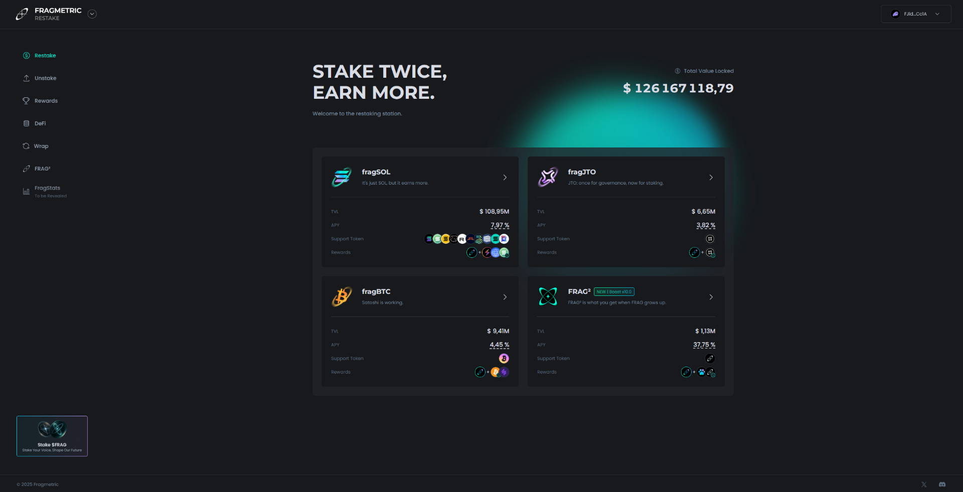Découvrez comment Fragmetric transforme le SOL et les LST en fragAssets prêts pour la DeFi comme fragSOL. Restakez pour des récompenses supplémentaires, capitalisez automatiquement le rendement de staking/MEV, wrappez pour les intégrations et réclamez des incitations — le tout sécurisé par une infrastructure modulaire et auditée sur Solana.
