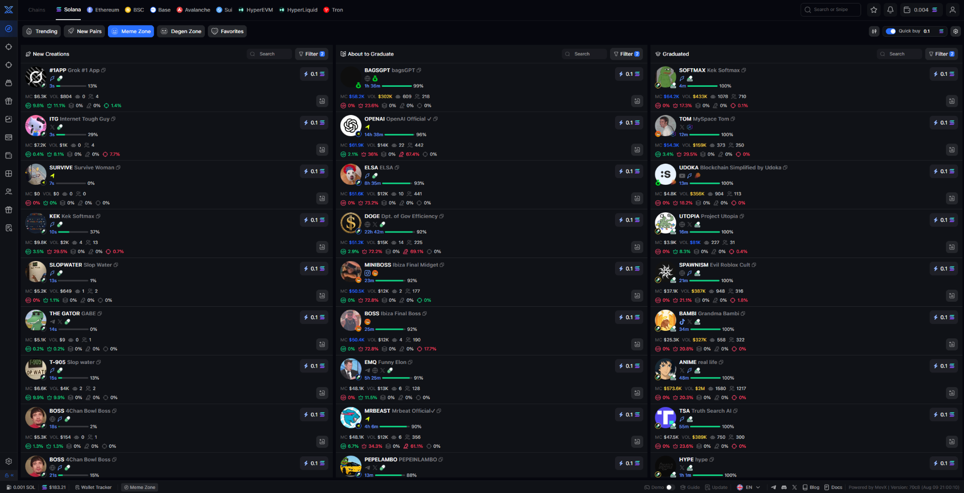MevX est une suite de trading multi-chaînes qui prend en charge Solana ainsi que les DEX et plateformes de lancement Solana les plus actifs.