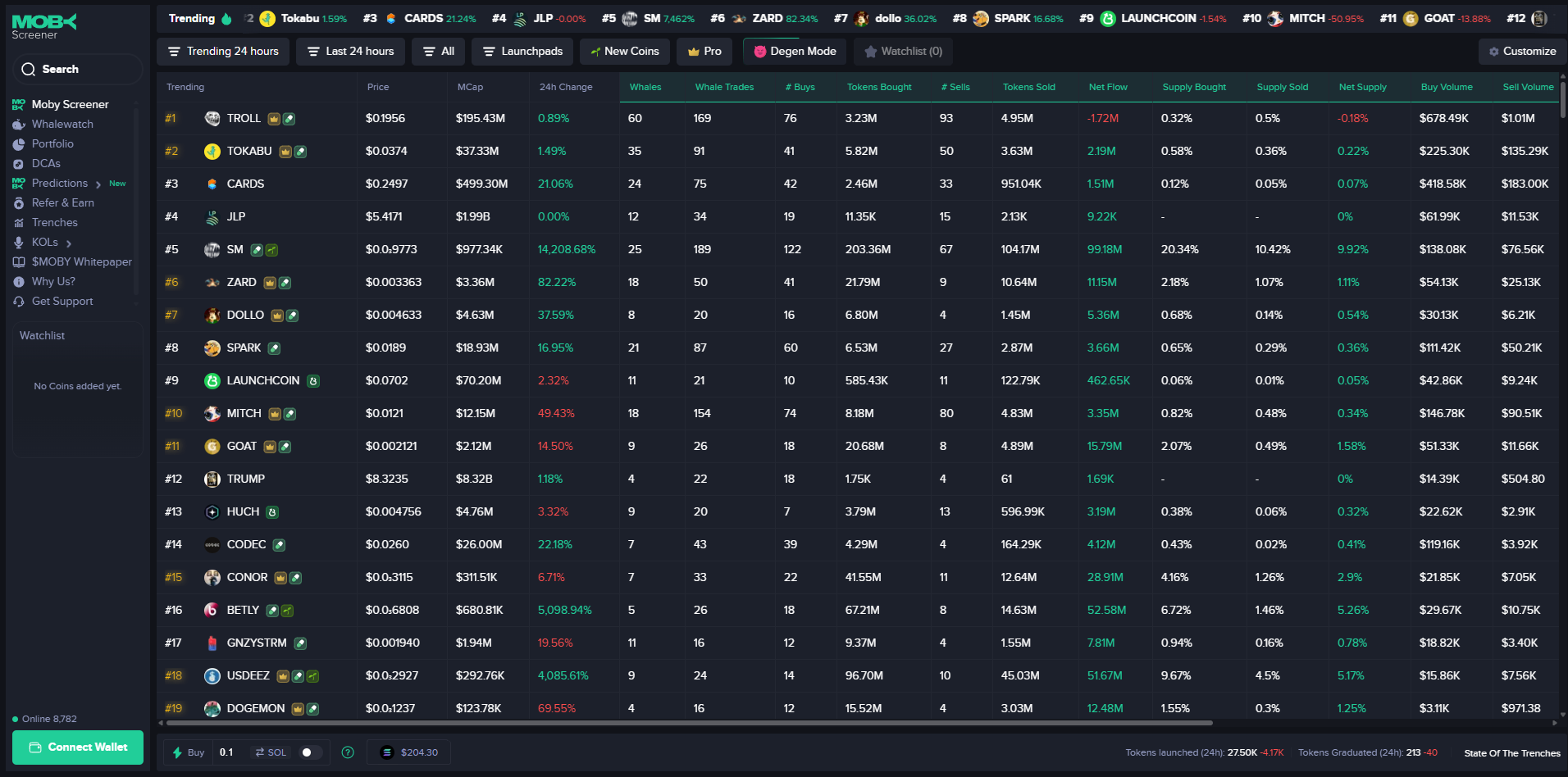 MobyScreener privilégie la vitesse et la clarté — ouvrez une page token, voyez l’essentiel, et agissez rapidement si vous le souhaitez.