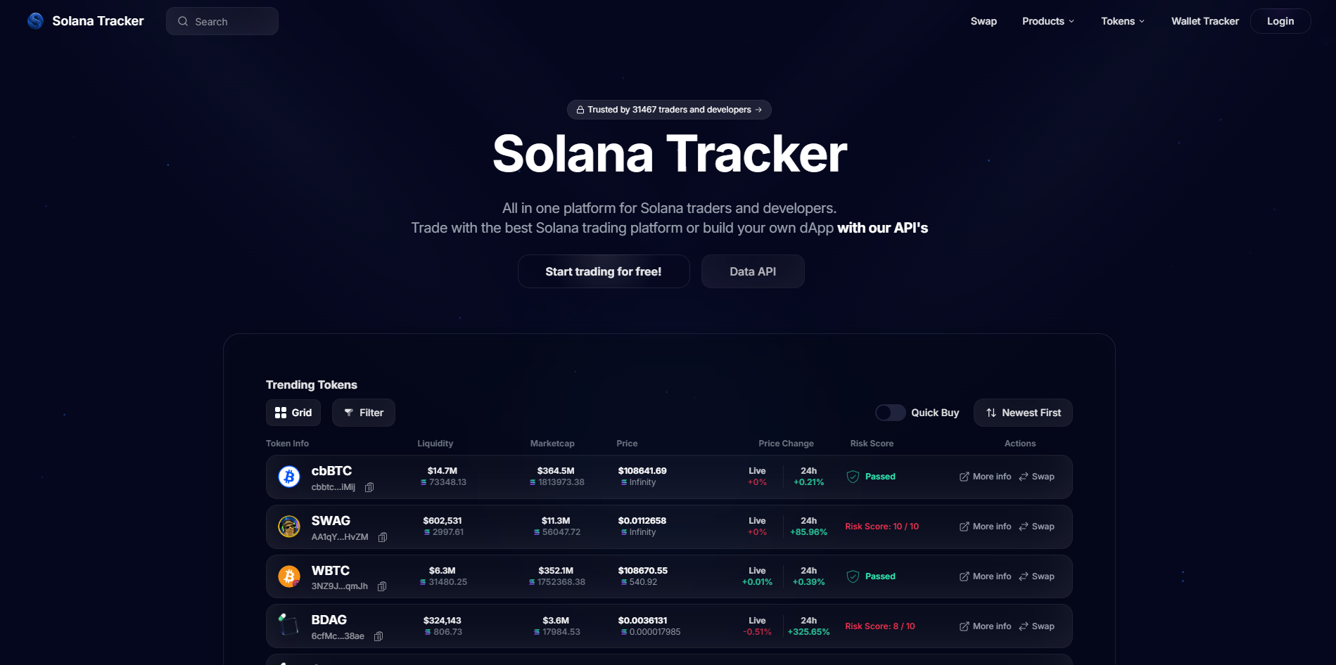 Découvrez Solana Tracker : tradez des tokens, suivez des portefeuilles et créez des dApps avec des API. Rapide, sécurisé, et idéal pour les traders comme pour les développeurs.