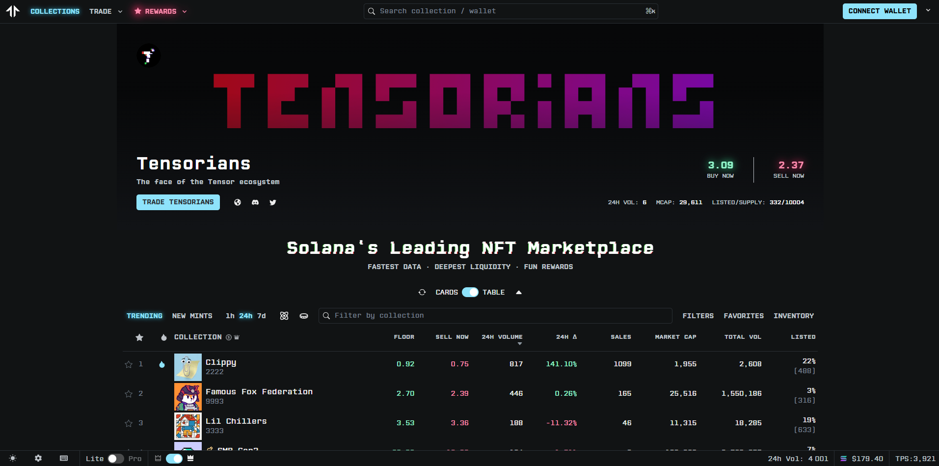 Tensor est une place de marché NFT de premier plan construite sur la blockchain Solana, offrant une plateforme pour trader, acheter et vendre des jetons non fongibles (NFT) efficacement.