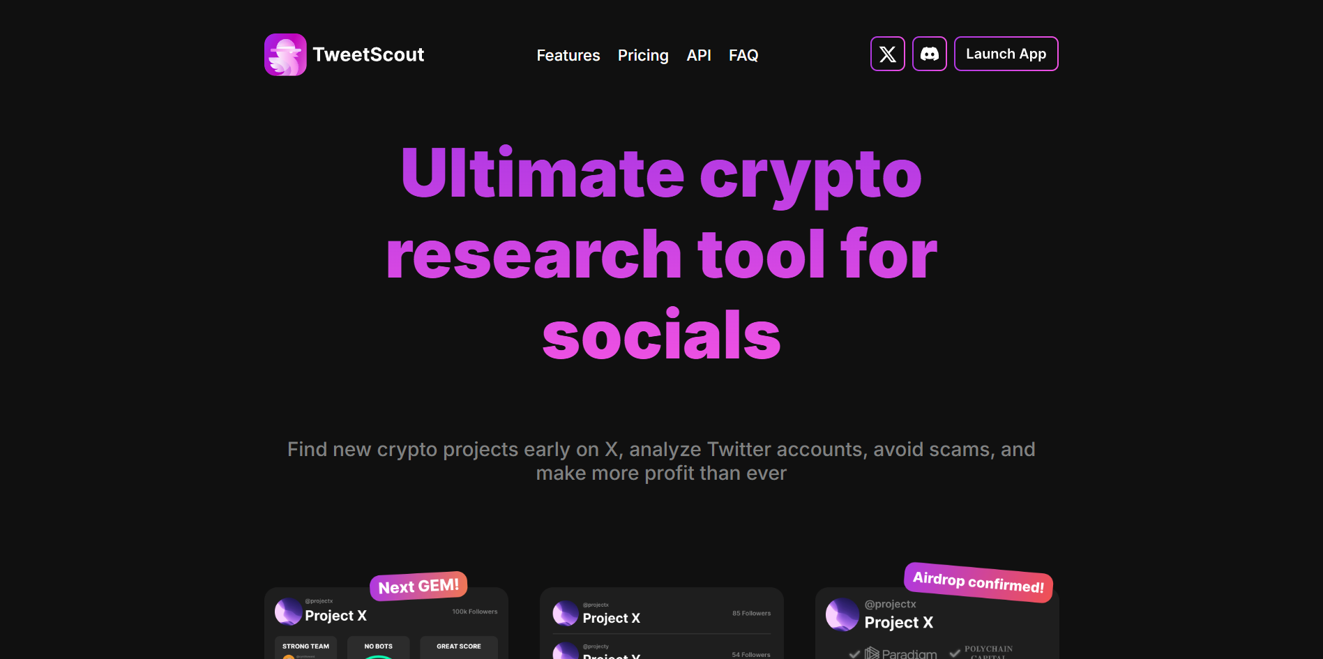 En utilisant des algorithmes propriétaires et l’IA, TweetScout identifie des comptes émergents liés à la crypto, permettant aux utilisateurs de découvrir de nouveaux projets dans des domaines comme les NFT, la DeFi et le GameFi à leurs tout premiers stades.