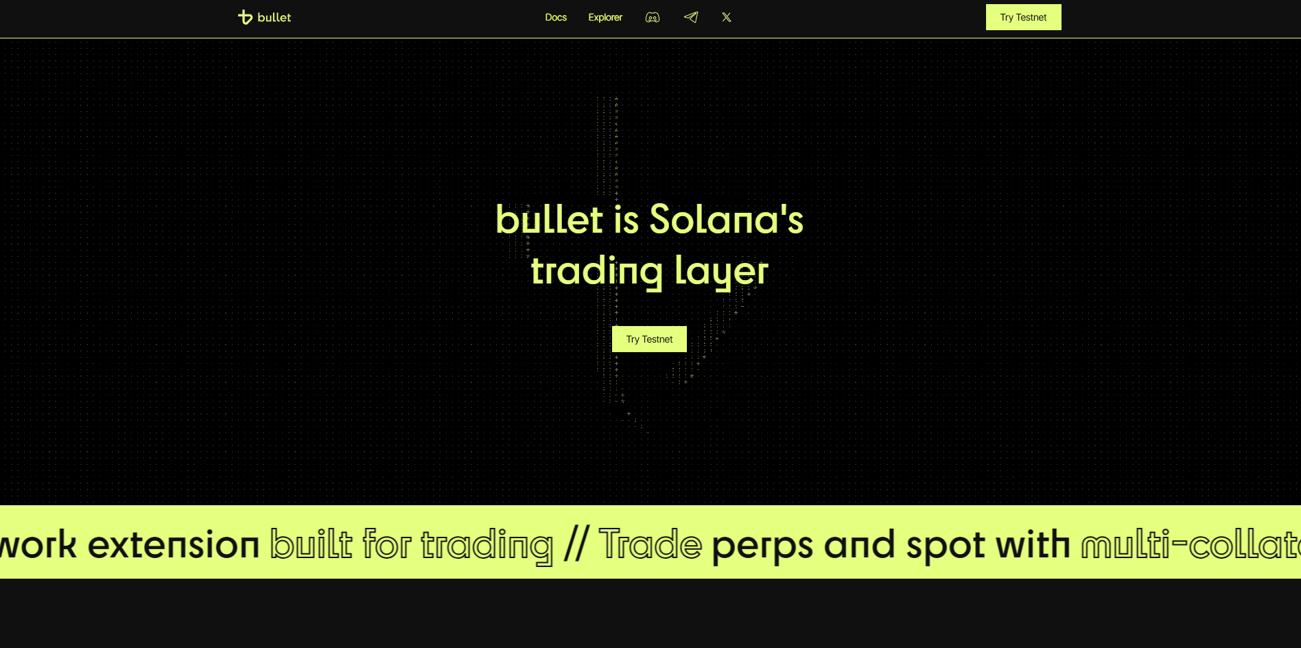 Bullet is a Solana-aligned trading network and exchange stack built for high-speed, on-chain markets. It runs as a specialized “network extension” that anchors security and settlement to Solana while providing a low-latency execution environment and an exchange called BulletX for perpetual futures, spot trading, lending, and vault strategies. Bullet targets traders who want CEX-style responsiveness without giving up transparent, programmatic settlement on Solana.