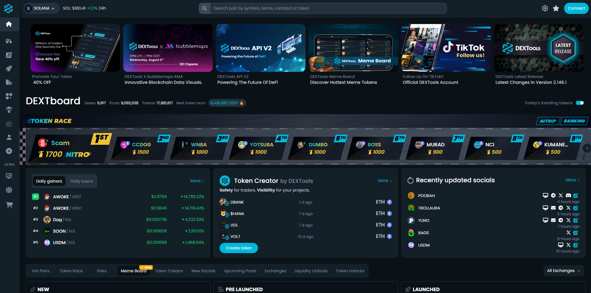 Explore DEXTools for real-time analytics on Solana tokens. Access charts, trading signals, and liquidity insights to enhance your trading strategies.