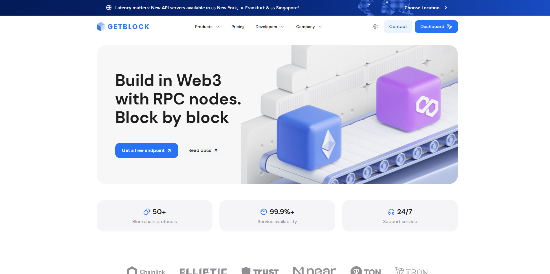 GetBlock offers both shared endpoints for quick starts and dedicated nodes (including archive options) for maximum performance and isolation, with data centers available in multiple regions to minimize latency.