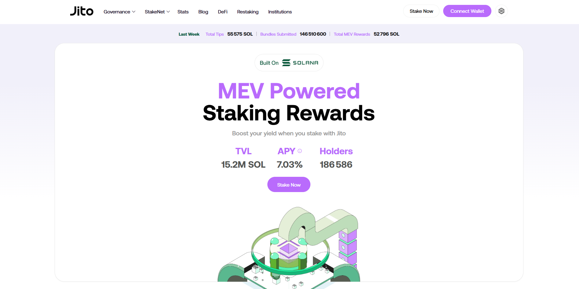 Jito's software enables Solana to run more efficiently and earn MEV rewards. These rewards are redistributed to stakers, boosting their overall yield.
