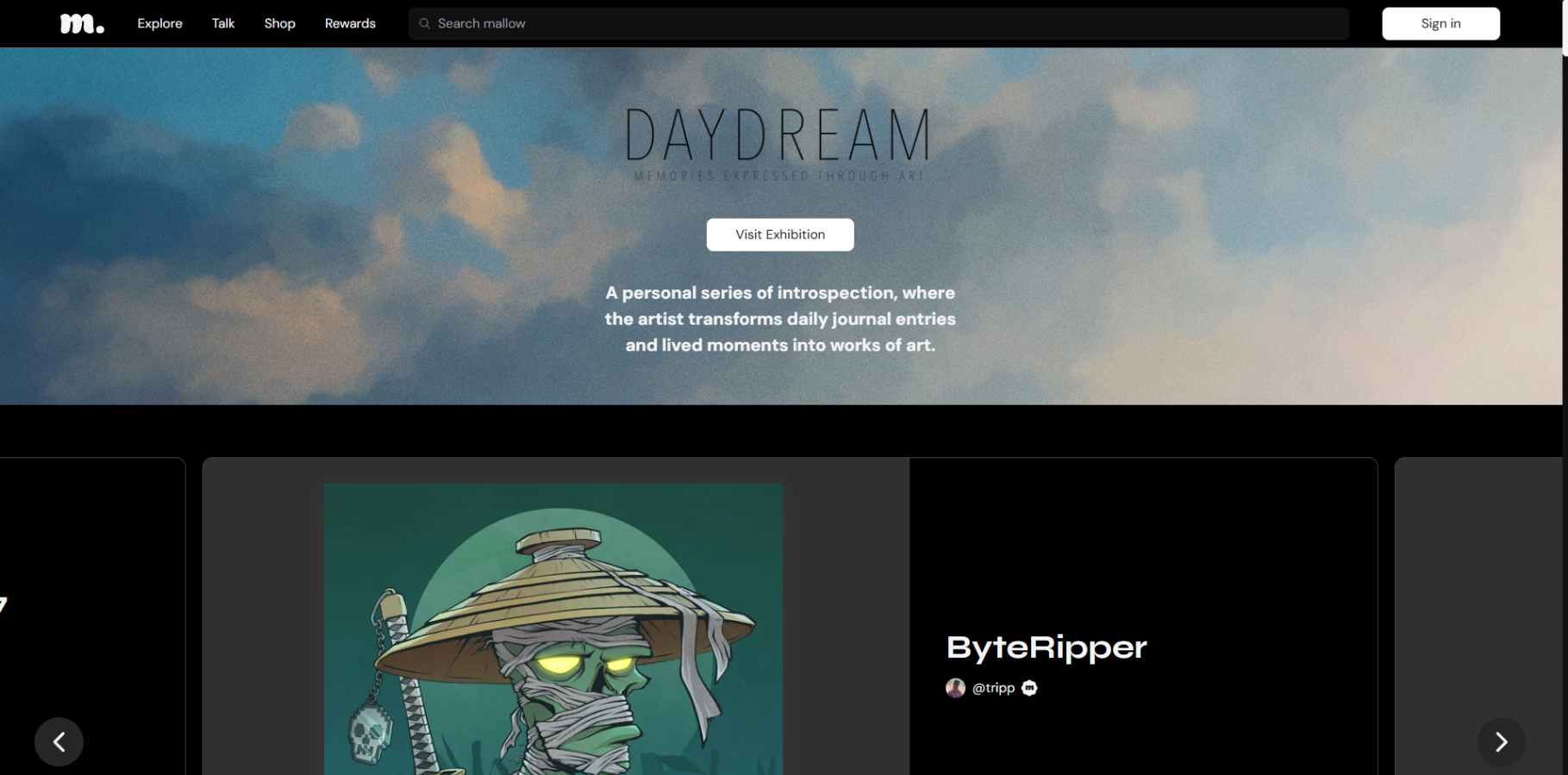 Explore mallow, a Solana art marketplace with auctions, fixed-price editions, Gumball randomized sales, raffles, physicals, cross-platform aggregation, and SMORES rewards.