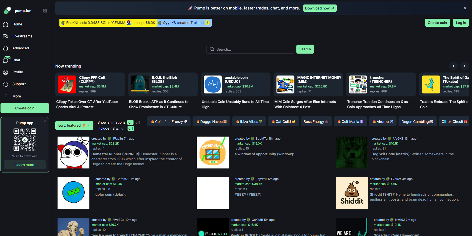 Pump uses smart contracts for token creation, but always do your own diligence. Some coins may be risky or short-lived as anyone can launch any token, so check each project before investing.
