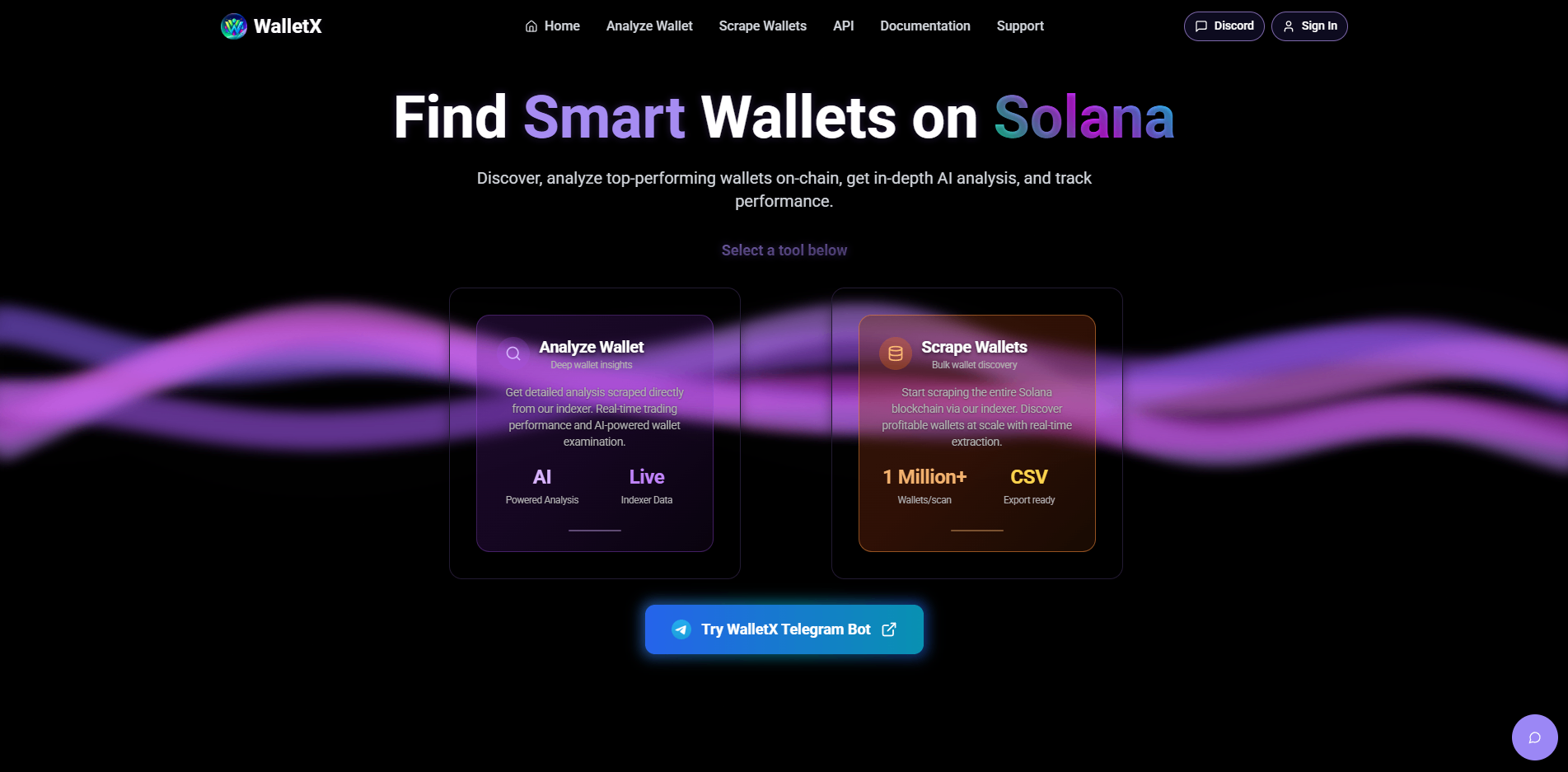 WalletX is a leading wallet analyzer designed for the Solana blockchain. It assists users in identifying profitable wallets for copy trading, thereby enhancing trading strategies.